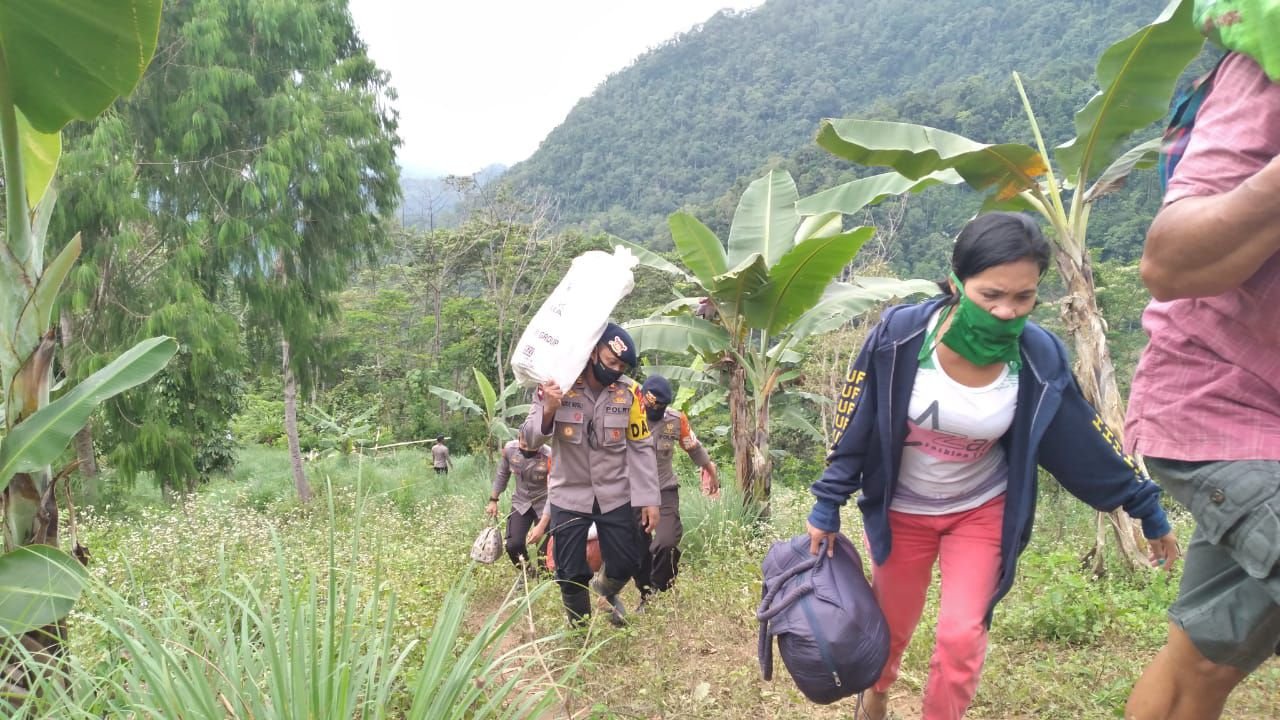 Proses evakuasi terhambat karena faktor akses ke lokasi yang tidak tembus dengan kendaraan bermotor sehingga personil memikul barang warga.(yustus)