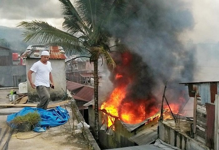 Kebakaran terjadi di Lorong Malison, Kelurahan Tallunglipu Matallo, Kecamatan Tallunglipu, Kabupaten Toraja Utara dan menghanguskan dua rumah warga serta dua kendaraan motor di lingkungan Pasar Bolu, Kamis (02/07/2020).