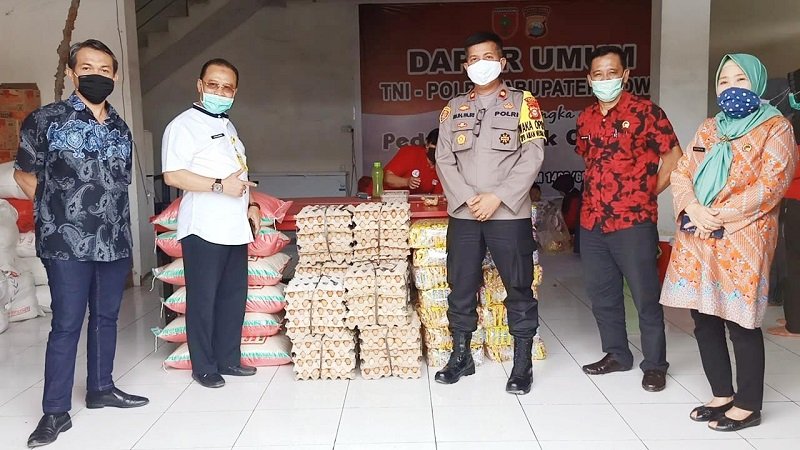Sebanyak 120 rak telur, Mega Mie 15 ball, dan sebanyak 6 karung beras (@25 kg) diserahkan langsung Kepala Badan Pertanahan Negara (BPN) Gowa untuk kepentingan logistik dapur umum TNI-Polri.