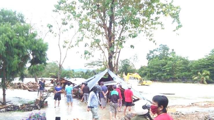 Beberapa rumah yang berada di bantaran kedua sungai tersapu banjir bandang, sebagaimana disampaikan seorang security di BRI yang enggan disebut namanya, Selasa (14/7/2020) pagi.