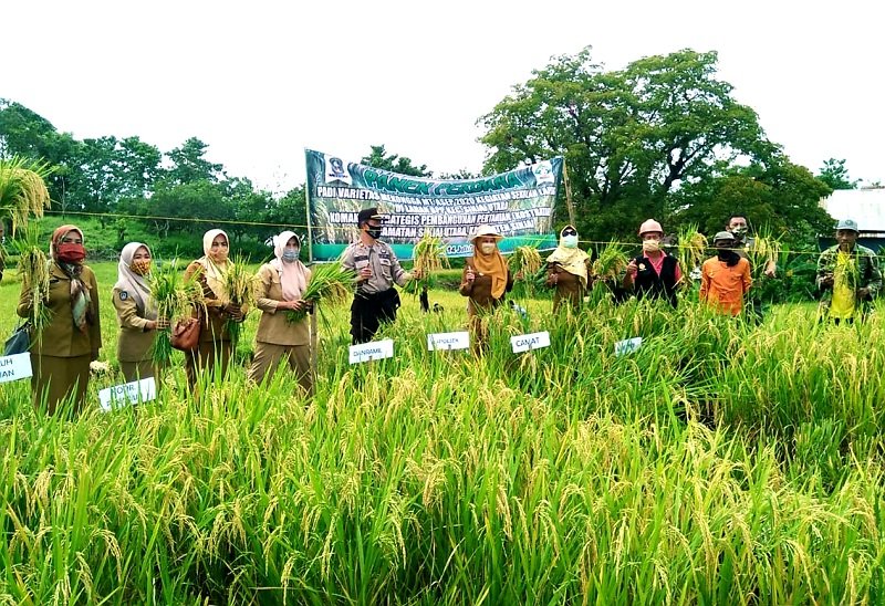 Dalam panen perdana tersebut para penyuluh pertanian maupun petani tetap menerapkan protokol kesehatan dengan wajib memakai masker dan menjaga jarak. (AaN)