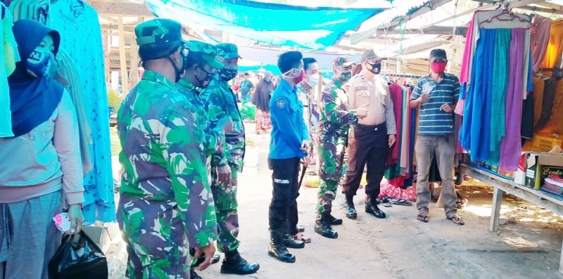 Seperti yang dilakukan personel Polsek Bontomatene bersama personel Koramil Bontomatene dan staf Kecamatan dalam melaksanakan kegiatan pendisiplinan kepada pengunjung Pasar Tradisional Parangia, Desa Tanete, Kecamatan Bontomatene, Kamis (16/07/2020).