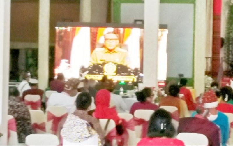 Bupati Kalatiku setelah mendengar sambutan Gubernur Sulsel sangat berterimakasih dan mengapresiasi atas kehadiran Nurdin Abdullah memberikan kata sambutan yang penuh semangat melalui virtual aplikasi Zoom di perayaan Hari Jadi ke-12 Toraja Utara yang digelar secara sederhana dalam syukuran HUT kabupaten Toraja Utara. (man)