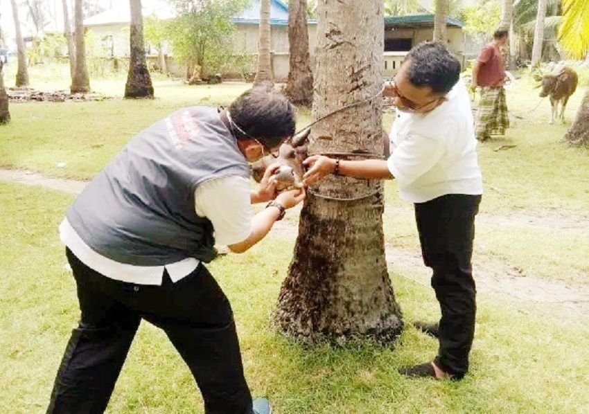 “Kegiatan ini rutin dilaksanakan setiap tahunnya menjelang hari raya Idul Adha. Apalagi saat ini dalam situasi pandemi Covid-19, kami betul-betul harus memastikan bahwa kondisi hewan qurban yang akan dipotong, dalam keadaan sehat dan terbebas dari penyakit khususnya penyakit zoonosis yaitu penyakit yang dapat menular dari hewan ke manusia atau sebaliknya,” jelas drh. Ikhsan Fathoni Rahmat.