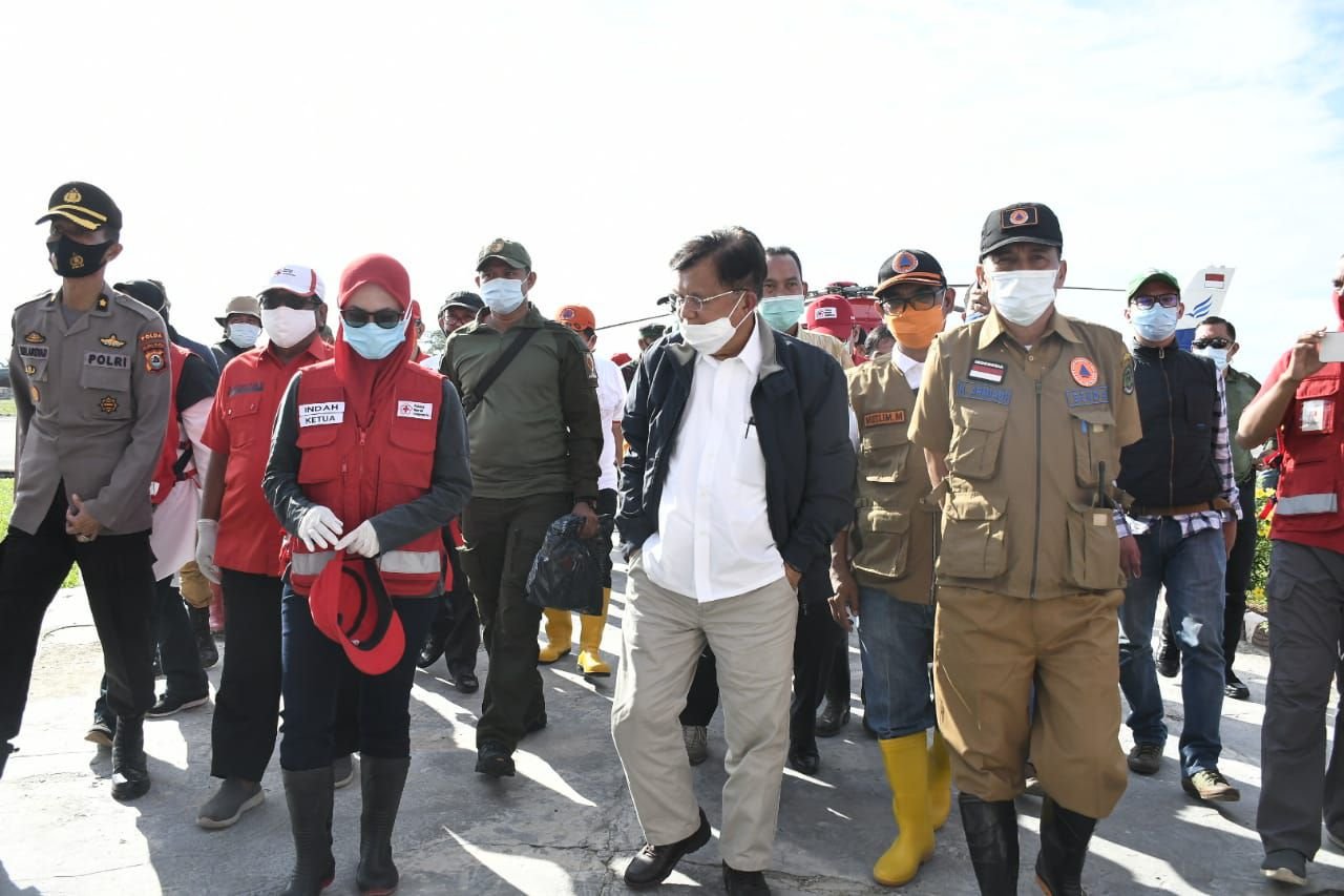 “Prinsip ini (tercermin) seperti kita lakukan dengan membantu membersihkan lumpur, batang kayu berserakan, sampah dipengungsian, serta selalu pakaiki masker,” pesan mantan Wapres.