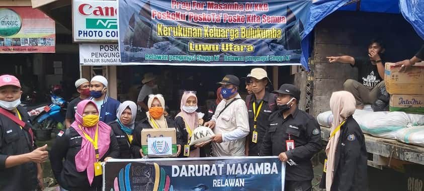 Ketua Apdesi Bulukumba, Mahfud dan Komunitas Keluarga Angkat dari Kecamatan Herlang, Andi Herlawati Makkasau sama-sama mengantar bantuan tersebut ke Luwu Utara yang diterima Muh. Kasrum Patawari, kepala Dinas Perdagangan Perindustrian Koperasi Usaha Kecil Menengah (P2KUKM) yang juga orang Bulukumba, mewakili Bupati Luwu Utara, Indah Putri Indriani di Posko.