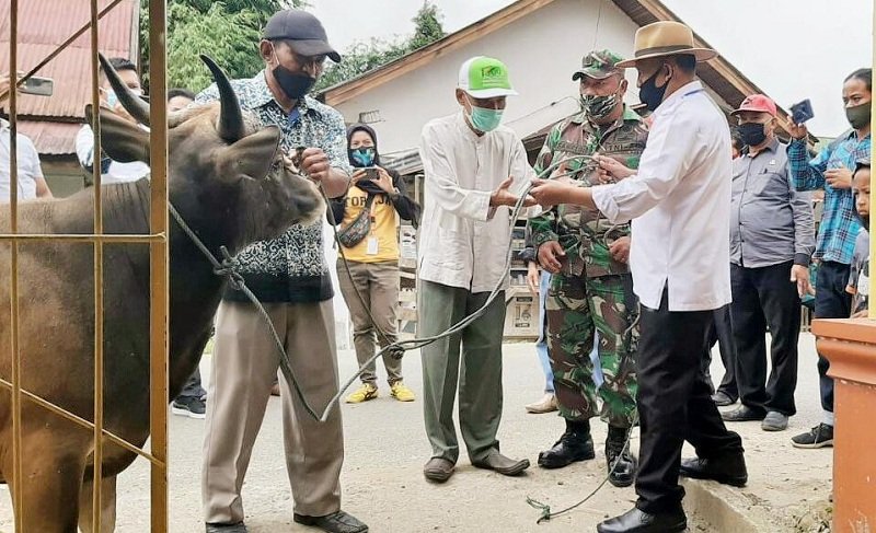 Dalam penyerahan hewan kurban kepada pengurus mesjid yang mewakili jamaah oleh Bunbum Pakata dalam ungkapan terimakasihnya menyampaikan, kami pengurus Mesjid sangat berterima kasih kepada pemerintah daerah dan jajarannya atas penyerahan hewan kurban untuk hari raya Idhul Adha, dan sebagai wujud perhatian dalam pembangunan keagamaan.