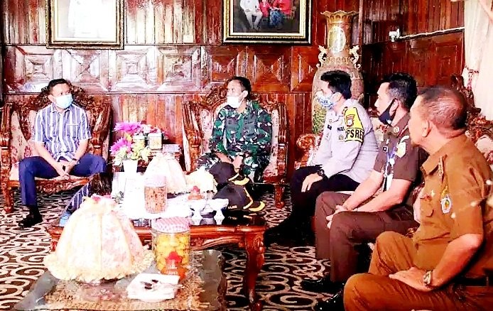 Bupati Kepulauan Selayar H. Muh Basli Ali menyambut kedatangan pejabat baru Dandim 1415 Kepulauan Selayar, Letkol Kav Adi Priatna di rumah jabatan Bupati Kepulauan Selayar, Selasa (11/08/2020) siang.