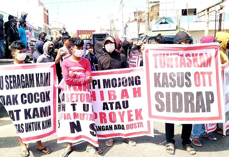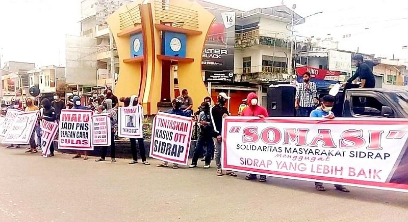 SOMASI, Selasa (25/08/2020) pagi hingga sore didukung ratusan massa, menggelar aksi unjuk rasa besar-besaran di depan gedung DPRD Sidrap, sebagai bentuk kepedulian mereka terhadap terungkapnya sejumlah kasus dugaan korupsi di Sidrap, seperti kasus OTT Diknas Sidrap dan kasus TPI Mojong yang sudah sampai di pengadilan Tipikor.