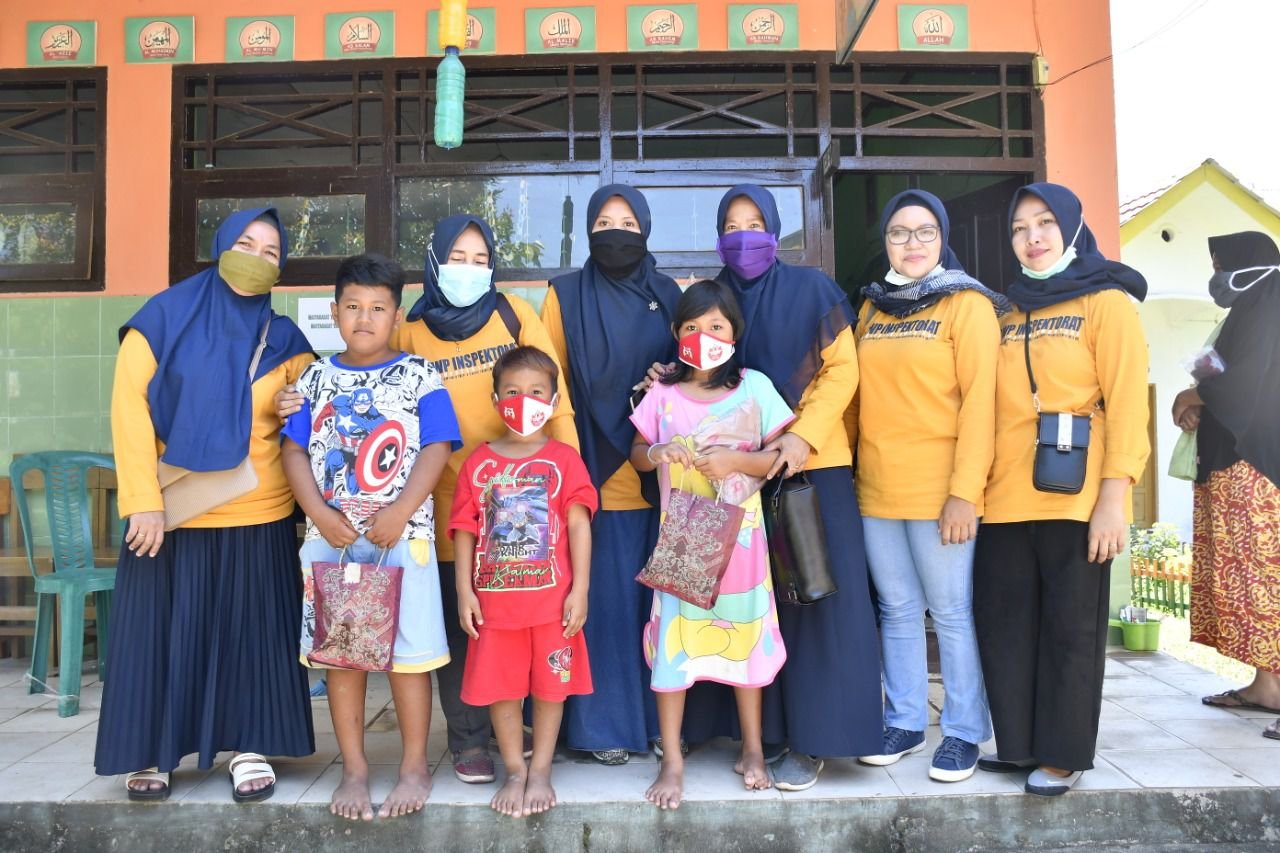 Dipimpin langsung Ketua DPW Inspektorat Lutra, Ny Harabia Muchtar, baksos ditandai dengan penyerahan bantuan uang tunai, baju, mainan anak-anak dan perlengkapan PHBS.