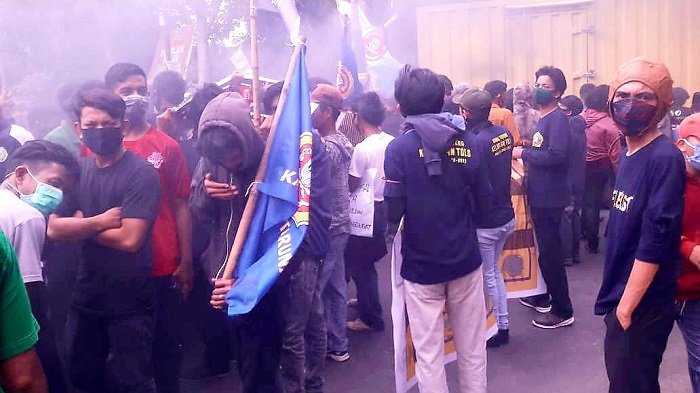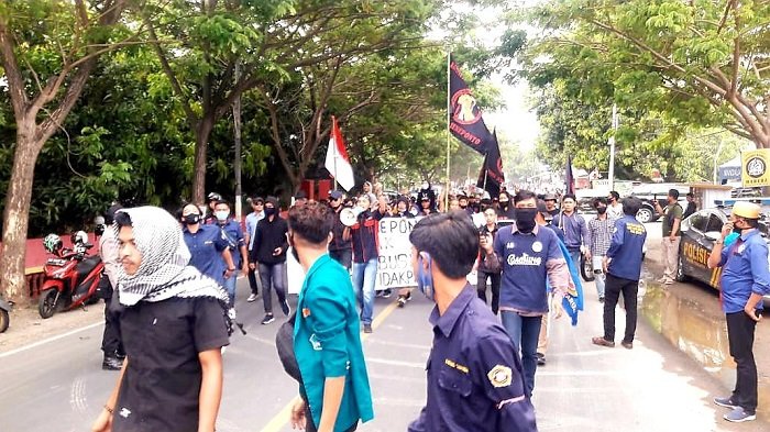 Berbagai elemen di Kabupaten Jeneponto yakni mahasiswa, buruh, OKP, dan Ormas melakukan aksi unjuk rasa di kantor DRPD Jeneponto menolak Omnibus Law UU Cipta Kerja, Jumat (09/10/2020) siang sekitar pukul 14.00 Wita.