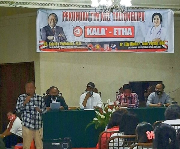 Dalam pengukuhan tim pemenangan Kala-Etha turut hadir Paslon Bupati Kalatiku Paembonan, wakil ketua Umum pemenangan Yusuf Rombe, ketua umum srikandi Erda Rombe, tim pemenangan partai, Israel Makole (Gerindra), Thimotius Samuel Lande (PDIP), Yusuf Tangke Manda (Partai Perindo), dan Alam Lamba (PKPI) serta Korcam Kecamatan Tallunglipu, (man).