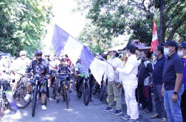 Wakil Gubernur Sulawesi Selatan (Sulsel), Andi Sudirman Sulaiman, membuka dan melepas peserta Gowes Bersedekah Fun Bike 2020 Kabupaten Takalar, Minggu (11/10/2020). Gowes 8K tersebut star dan finish di Taman Alun-alun Makkatang Dg Sibali, dan dihadiri Bupati dan Wakil Bupati Takalar, serta Sekda Takalar.