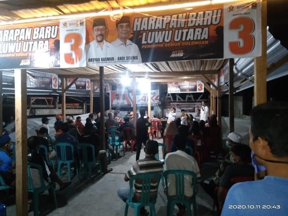 Pasangan calon (paslon) nomor urut 3, Arsyad Kasmar-Andi Sukma (AKAS), Minggu (11/10/2020) malam, menemui warga Kelurahan Salassa, Kecmatan Baebunta, Kabupaten Luwu Utara (Lutra), Sulawesi Selatan.