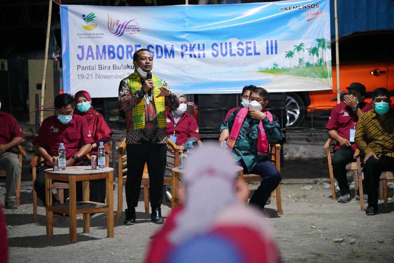 Sekitar 300 pendamping Program Keluarga Harapan (PKH) mengikuti Jambore SDM PKH III, di Pantai Bira, Kabupaten Bulukumba, Jumat (20/11/2020). Peserta jambore adalah Koordinator PKH Sulawesi Selatan (Sulsel) Wilayah III dari Kabupaten Gowa, Takalar, Jeneponto, Bantaeng, Bulukumba, dan Kepulauan Selayar.