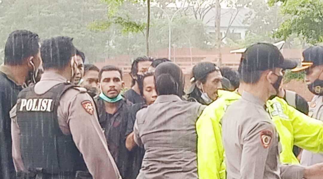 "Tadi kami membubarkan massa karena peserta aksi menutup akses jalan," ungkap Kompol Jamaludin. (*dion)