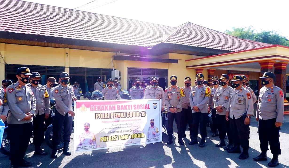 Penyaluran Bantuan Sosial yang berbentuk 10 ton beras Polri dilaksanakan dengan mengerahkan seluruh personel Bhabinkamtibmas, dan menggunakan armada 6 randis roda empat, puluhan randis roda dua, serta puluhan personel Bhabinkamtibmas yang bergerak secara serentak ke 6 wilayah Polsek jajaran Polres Tana Toraja.