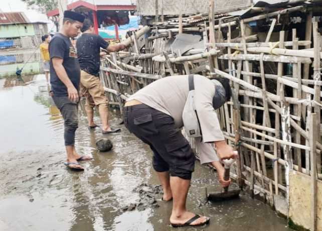 Bripka Kaharuddin selaku Bhabinkamtibmas dalam kesempatan itu menyampaikan pesan-pesan Kamtibmas kepada warga agar selalu waspada dengan kondisi bencana seperti banjir di musim penghujan ini dan bagi para nelayan agar tidak melakukan aktivitas di laut jika cuaca hujan yang disertai angin kencang memburuk.