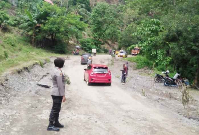 "Kami terus memantau lokasi jalan retak dengan tujuan untuk memastikan kelancaran arus lalulintas di wilayah kami," ujar Kapolsek.