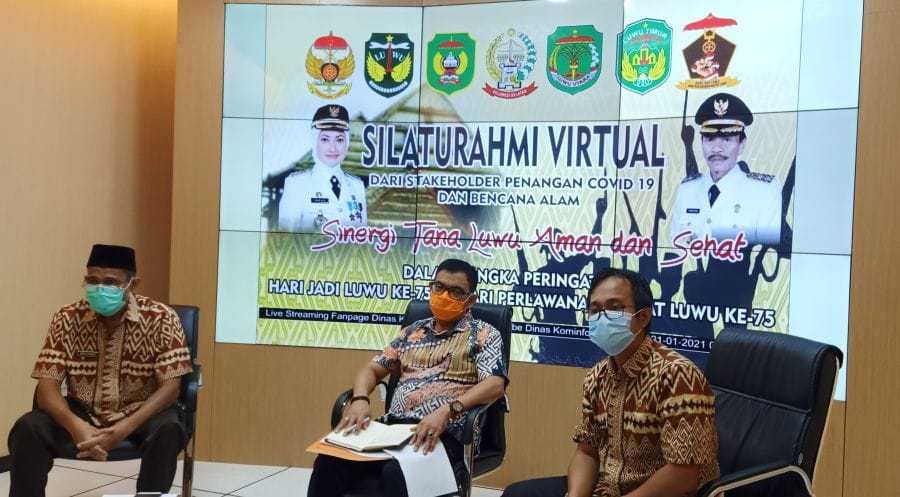 Silaturahmi secara virtual antar stakeholder penanganan Covid-19 dan mitigasi bencana se-Tana Luwu atas gagasan Panitia Pelaksana Peringatan Hari Jadi Tana Luwu ke-753 dan Hari Perlawanan Rakyat Luwu (HPRL) ke-75 sukses digelar di ruang Command Center Kantor Bupati Luwu Utara, Kamis (21/1/2020).