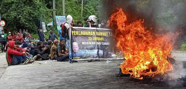 Puluhan mahasiswa yang mengatasnamakan Wija To Luwu unjuk rasa di jembatan Baliase, Kecamatan Masamba, Kabupaten Luwu Utara bertepatan dengan digelarnya momentum Hari Jadi Luwu ke-753 dan Hari Perlawanan Rakyat Luwu ke-75, Sabtu 23 Januari 2021.