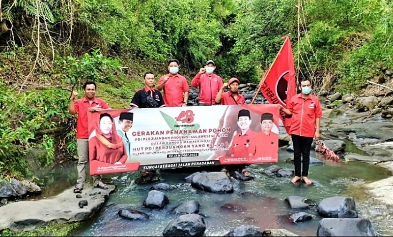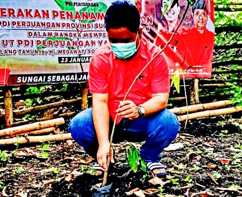 Ketua DPC PDI Perjuangan Kepulauan Selayar, Muh. Anas Ali, SH bersama seluruh pengurus dan simpatisan partai, melakukan penanaman sebanyak 250 bibit pohon, sebagai kado Hari Ulang Tahun (HUT) ke-74, DR. Hj. Megawati Soekarnoputri.