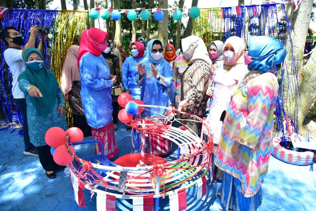 Ketua Tim Penggerak PKK, Lies F Nurdin, meresmikan taman bermain Firdaus, di Kabupaten Pinrang, Jumat (19/2/2021). Peresmian taman bermain ini bertepatan dengan peringatan Hari Jadi Kabupaten Pinrang ke-61 tahun.