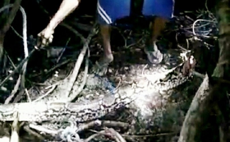 Ular piton ini didapati telah memangsa seekor kambing ternak milik warga.