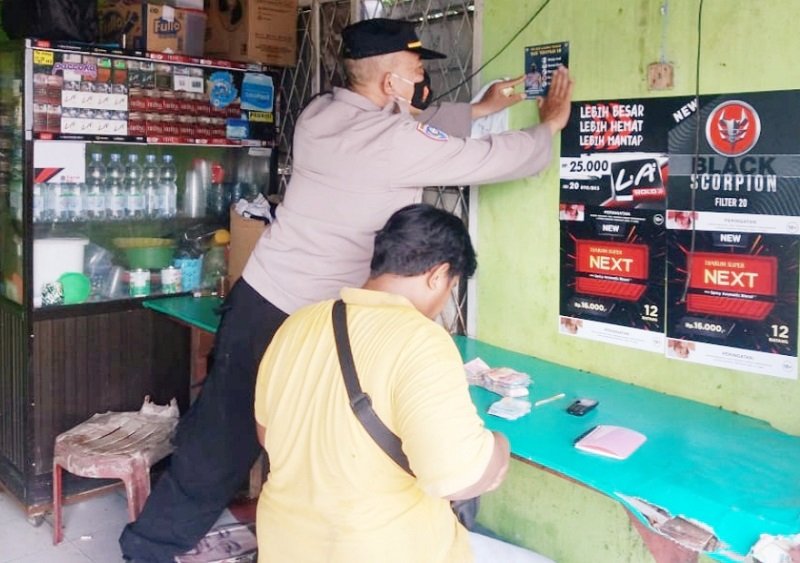Meminimalisir penyebaran Covid-19, personel Polsek Ujung Tanah Polres Pelabuhan Makassar memasang stiker 5M yang berisi imbauan penerapan protokol kesehatan di rumah warga dan warkop serta tempat-tempat keramaian di wilayah hukumnya.