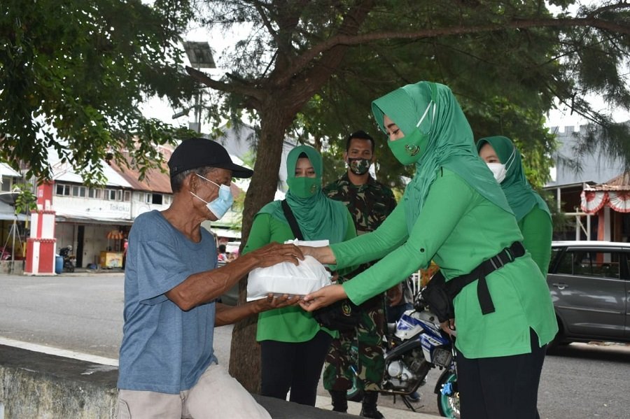 Aksi sosial oleh pengurus Persit KCK Cabang XXIX Kodim 1415 Selayar ini dilaksanakan dengan tetap memperhatikan protokol kesehatan. (Ucok Haidir)
