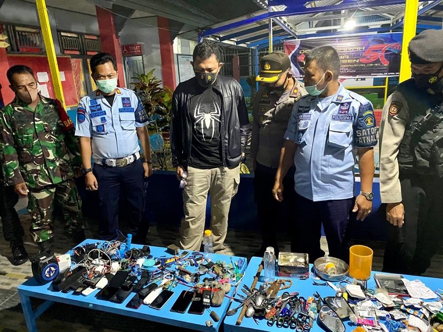 Dan hasilnya, sejumlah barang-barang ilegal disita dari ruangan para napi.