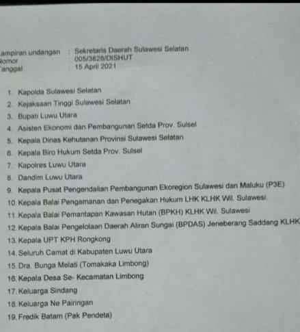 Hal tersebut terungkap pada rapat koordinasi bersama Dinas Kehutanan Provinsi Sulsel, Polda, Bepedas Jeneberang-Saddang, Kepala Pusat Pengendalian Pembangunan dan Penegakan Hukum Lingkungan Hidup Kehutanan (LHK), Kepala Kejaksaan (Kajari), Kapolres, Balai Pemantapan Kawasan Hutan (BPKH) dan KPH Rongkong, di Aula La Galigo Kantor Bupati, Senin 19 April 2021.
