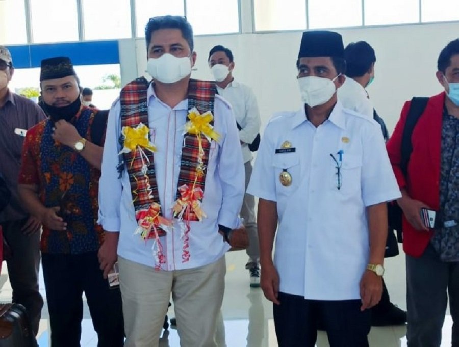 Jajaran Pemerintah Kabupaten Kepulauan Selayar menyambut kedatangan Tim Pendidikan Vokasi Universitas Hasanuddin untuk Kepulauan Selayar, di Sunari Beach, Rabu (21/04/2021).