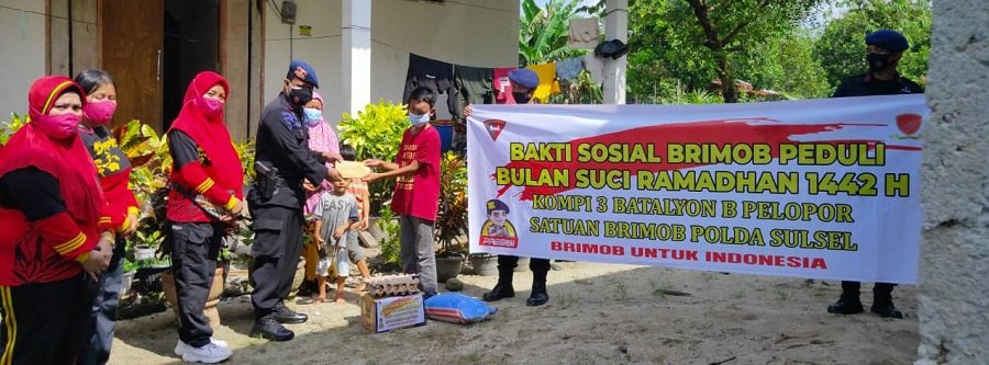 Bhakti Sosial Brimob peduli di bulan Suci Ramadhan kepada masyarakat disekitar mako yang terdampak juga pandemi corona. Jajaran Brimob Baebunta bersama Bhayangkari anjang sana kerumah yang telah ditentukan adalah 19 rumah untuk membagikan bantuan paket sembako yang dilakukan secara Door to door, Jumat 23 April 2021.