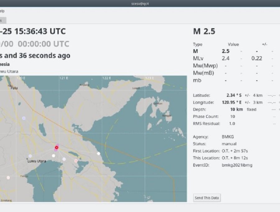 Menurut info Badan Meteorologi, Klimatologi, dan Geofisika (BMKG) Wilayah IV, lindu terjadi di Kabupaten Luwu Timur, Sulawesi Selatan.