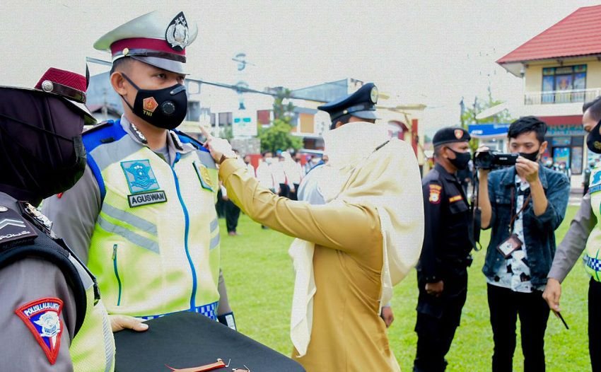 Pada kesempatan tersebut, Bupati Lutra selaku pemimpin apel membacakan sambutan Kepala Kepolisian Negara Republik Indonesia Jenderal Polisi Drs. Listyo Sigit Prabowo, M.Si.