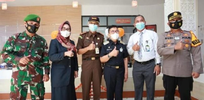 Wali Kota Palopo Drs HM Judas Amir MH, bersama Kepala Kejaksaan Negeri Kota Palopo Agus Riyanto SH, melaunching loket layanan terbaru Kejaksaan di loby Mal Pelayanan Publik Palopo, Senin kemarin 10 Mei 2021.