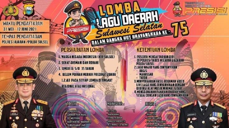 Lomba menyanyi lagu daerah Sulsel yang digelar secara virtual tersebut, dalam rangka memperingati Hari Bhayangkara ke-75 tahun 2021, pada 1 Juli 2021.