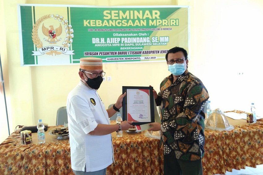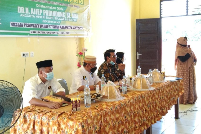 Untuk mencapai maksud agar tetap menjaga sikap toleransi, Anggota MPR RI Dr. H. Ajiep Padindang, SE., MM., melaksanakan Seminar Empat Pilar Kebangsaan MPR RI dengan mengangkat Tema “Membangun Sumber Daya Insani Yang Toleran Terhadap Pluralisme di Indonesia”, di Pesantren Darul I, Tihsam Kabupaten Jeneponto, (10/08/2021),