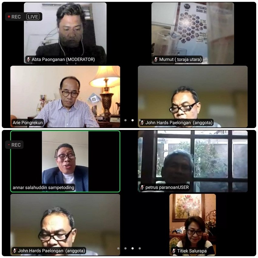Webinar Zoom yang dipandu Abta Paonganan selaku moderator dan Co Host/IT, Ellyas B Musu, berjalan sangat menarik, karena mampu memberikan hasil pemikiran dan ulasan yang baik. (noldus pandin)