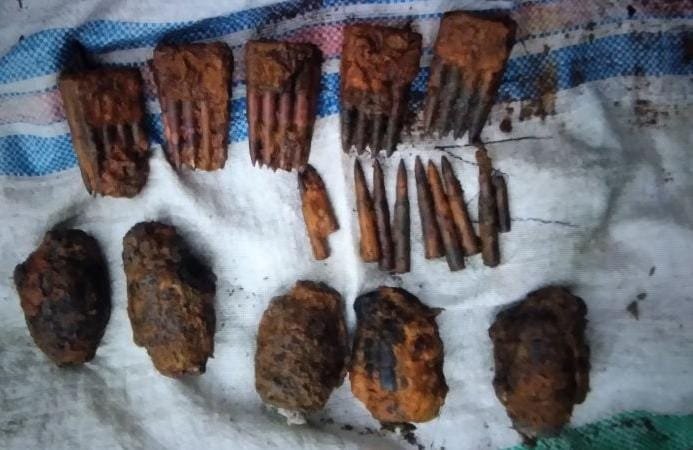 Dia menemukan granat 5 buah dan 53 butir peluru, yang semula dianggap besi karatan biasa, tapi setelah diamati besi karatan itu ternyata granat seperti yang dilihatnya digambar gambar.
