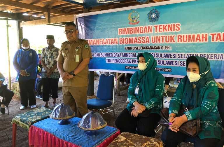 Dinas Energi dan Sumber Daya Mineral (ESDM) Provinsi Sulawesi Selatan (Sulsel) bersama Tim Penggerak PKK Sulsel menyelenggarakan kegiatan Bimbingan Teknik (Bimtek) Pemanfaatan Biomassa untuk Rumah Tangga, di Dusun Tanah Lompoa, Desa Sambueja, Kabupaten Maros, Selasa, 15 Maret 2022.