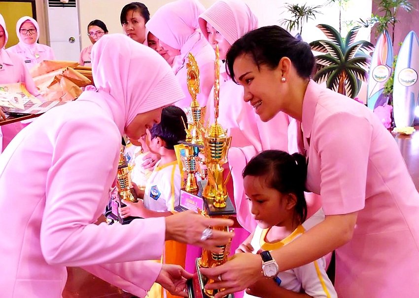 Penyerahan hadiah berupa piala dan bingkisan itu pun diserahkan langsung oleh Ketua Pengurus Yayasan Kemala Bhayangkari Daerah Sulsel Ny. Julachmi Hamidin kepada para pemenang, yang didampingi oleh masing-masing Ketua Pengurus YKB Cabang.