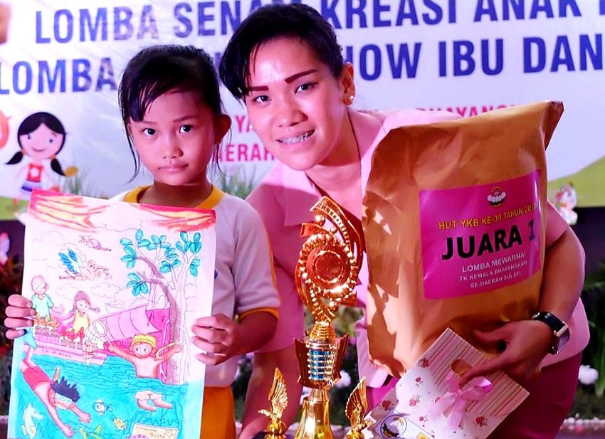 Patut diacungi jempol, TK Kemala Bhayangkari Cabang Gowa berhasil menyabet dua juara sekaligus pada lomba yang diselenggarakan Yayasan Kemala Bhayangkari (YKB) Daerah Sulsel dalam rangka peringatan HUT YKB ke-39, di Aula Paramartha SPN Batua Polda Sulsel, Sabtu (16/03/2019).