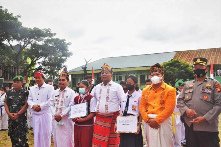 Bupati Theofilus membacakan sambutan seragam Menteri Pendidikan, Riset, dan Teknologi Republik Indonesia, Nadiem Anwar Makarim yang menjelaskan, langkah kita hari ini sudah cepat dan bergerak maju bersama. Hanya saja kita belum sampai di garis akhir.