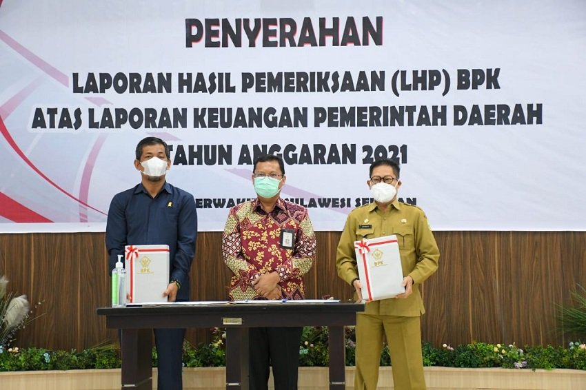 Opini WTP tersebut diraih Pemkab Sinjai atas Laporan Keuangan Pemerintah Daerah (LKPD) Tahun Anggaran 2021. Penyerahannya dilakukan di Kantor BPK-RI Perwakilan Sulsel di Makassar, Selasa, (17/05/2022).