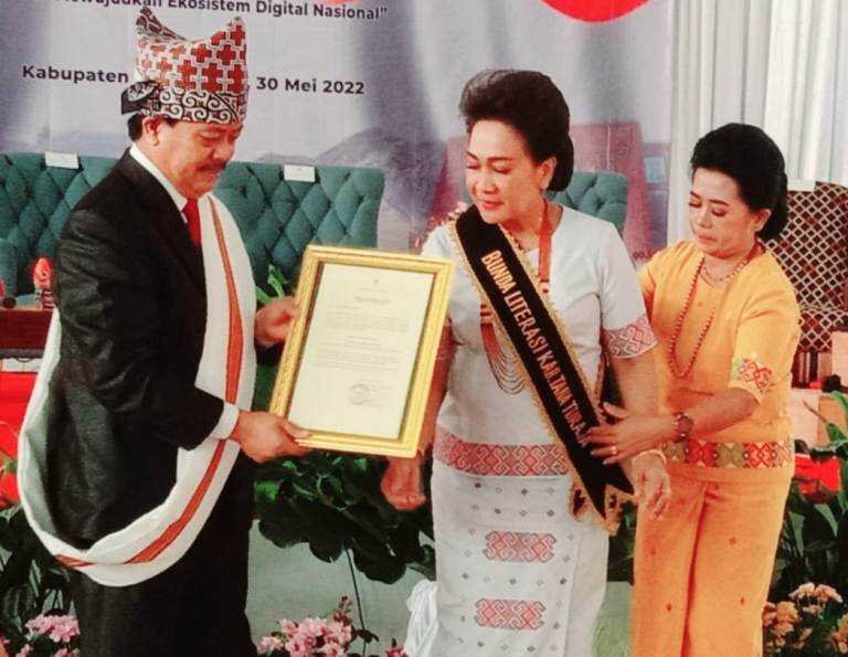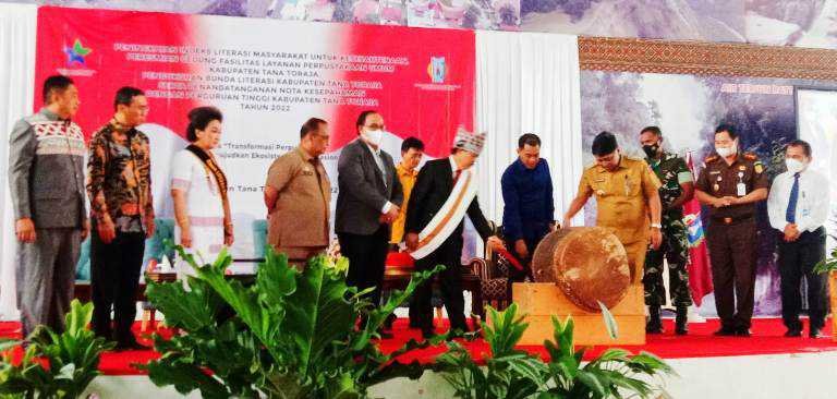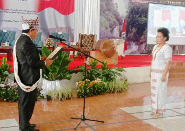 Kepala Perpustakaan Nasional (Perpunas) RI, Muhammad Syarif Bando, Senin (30/05/2022) melantik Erni Yetti Riman sebagai Bunda Literasi Tana Toraja, di Gedung Tammuan Mali, Makale.
