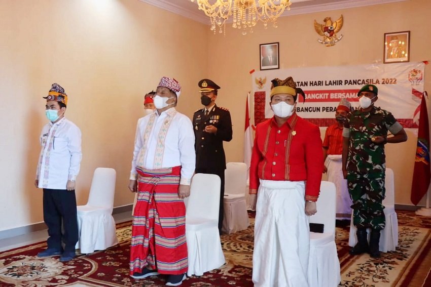 Bupati Tana Toraja Theofilus Allorerung, bersama Dandim 1414/Tator, Letkol Inf. Amril Hairuman Tehupelasury, Kapolres Tana Toraja AKBP Juara Silalahi, Ketua DPRD Wellem Sambolangi, Kajari Makale Herianto L. Paundanan, dan Ketua Pengadilan Negeri Makale Rustam di Rumah Jabatan Bupati Tana Toraja, Rabu (01/06/2022) mengikuti secara virtual peringatan Hari Lahir Pancasila 1 Juni 2022 yang dipimpin Presiden RI Joko Widodo langsung dari lapangan Pancasila, Ende, Provinsi Nusa Tenggara Timur, dengan tema "Bangkit Bersama Membangun Peradaban Dunia".