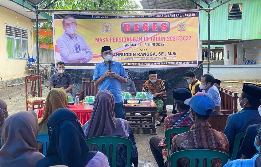 Fahruddin Rangga, SE, MSi, salah satu Anggota DPRD Provinsi Sulawesi Selatan dari Fraksi Partai Golkar, melaksanakan Reses Masa Persidangan Ketiga Tahun 2021/2022. Reses ke beberapa lokasi ini akan berlangsung dari tanggal 1 - 8 Juni 2022. Pelaksanaan reses diawali di Desa Bontomanai Kecamatan Mangarabombang Kabupaten Takalar, Jum’at (03/06/2022).