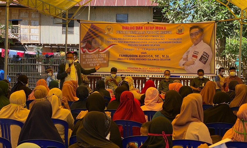 Sosialisasi hari pertama Penyebarluasan PERDA Nomor 1 Tahun 2021 Dan Perubahan Atas PERDA Nomor 1 Tahun 2019 Tentang Rencana Pembangunan Jangka Menengah Daerah (RPJMD) Provinsi Sulawesi Selatan 2018 – 2023, dilaksnakan di Desa Salajangki Kecamatan Bontonompo Selatan Kabupaten Gowa, Sabtu (13/08/2022).